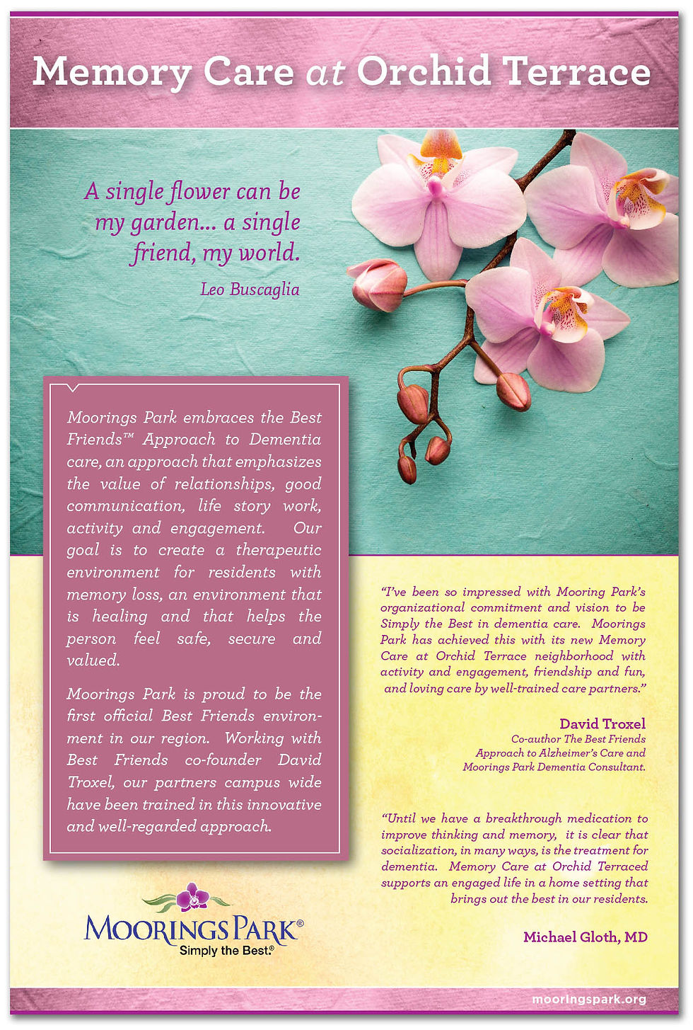 Project: To create an informational sheet for Orchid Terrace, the Memory Care unit located at Moorings Park.